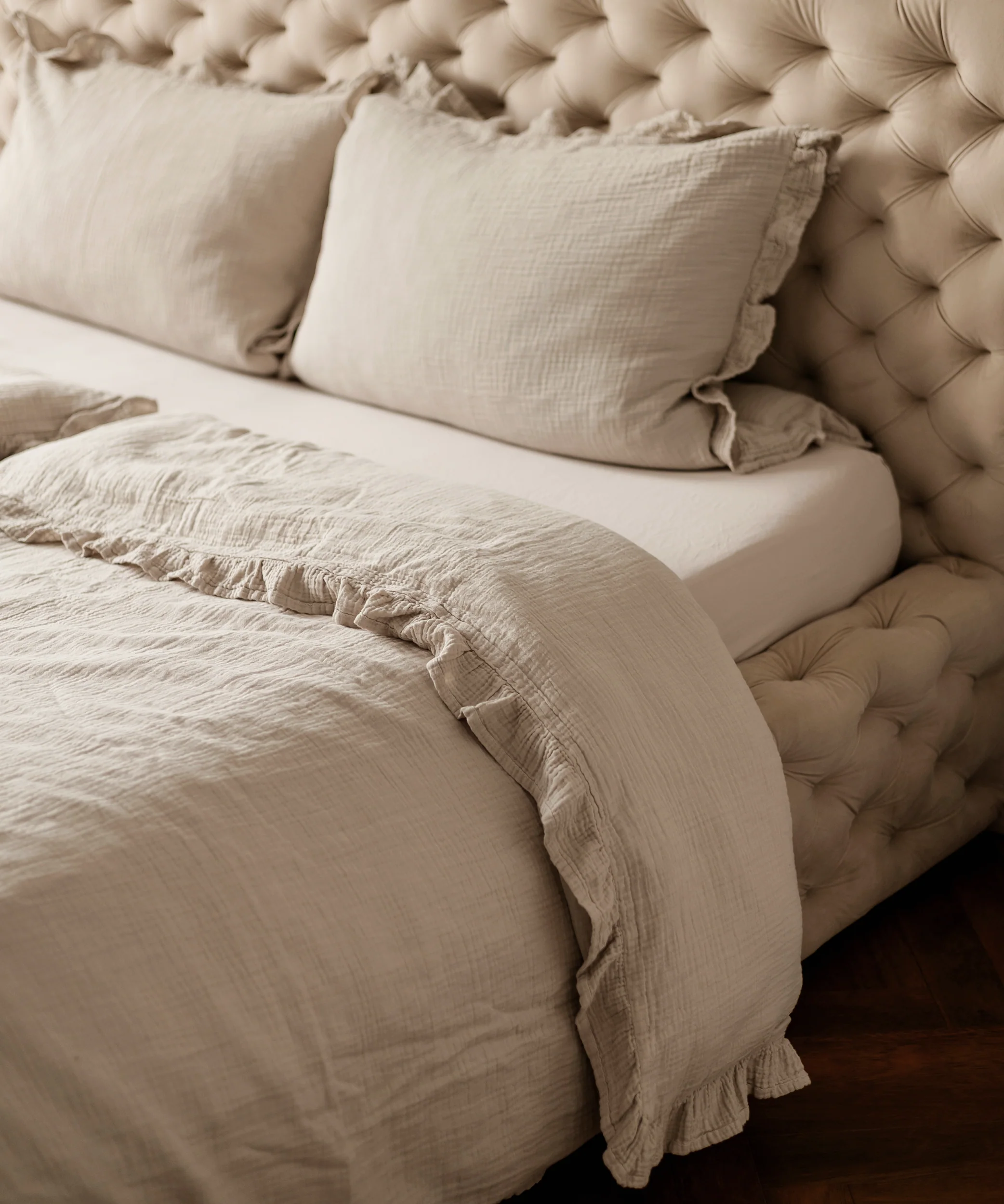 Ruffled Muslin Single Bedding Set Beige | Haven